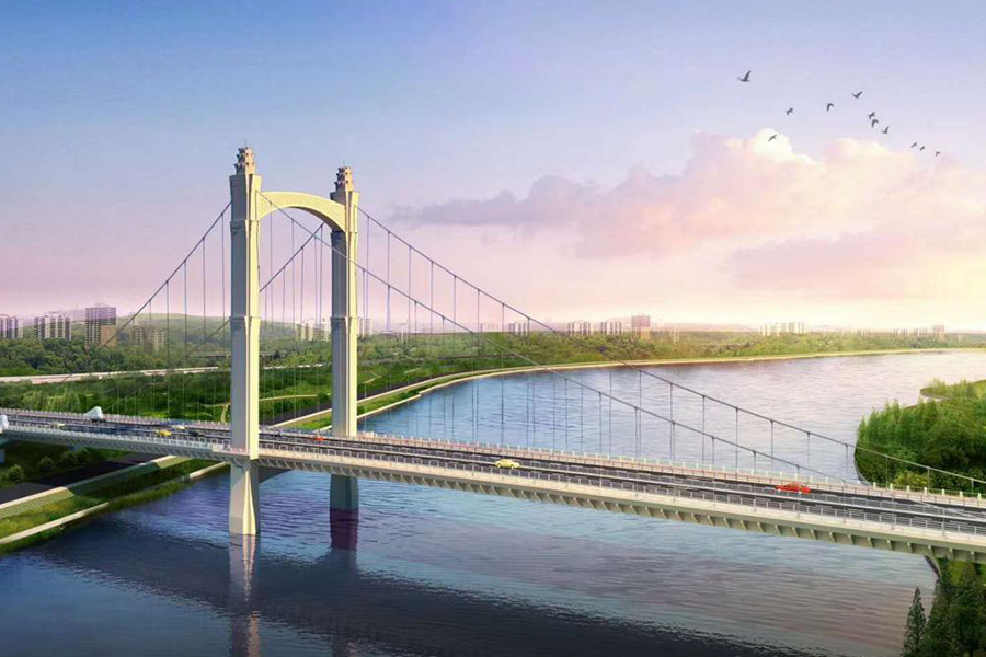 杭州九喬路大橋?yàn)閱嗡目缃M合梁自錨式懸索橋,橋梁全長368.4m,跨徑布置為30+2×150+30m。...